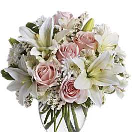 Price: $179.95 Elegant Beauty. Arranged with Roses, Lilies, fragrant Stock and other flowers and greenery Product Tags: Same-day Delivery