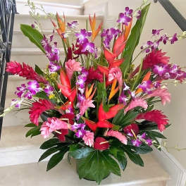 Price: $199.95 Red Tropical Gingers arranged tall in a square glass vase. Product Tags: Next-day Delivery