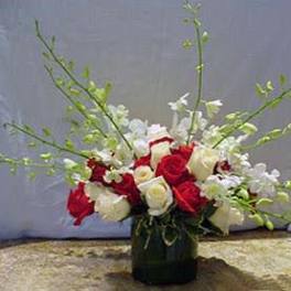 Price: $159.95 24 White and Red roses arranged round in a glass cube. Product Tags: Same-day Delivery